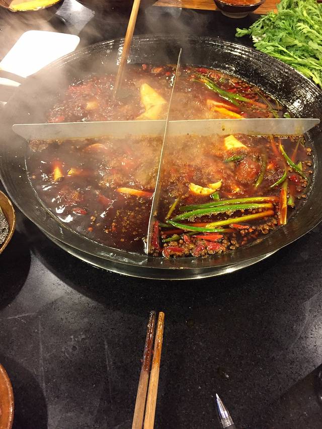 矿火锅是属于那种老重庆的火锅店,装饰也很古老,店面不大。桌子椅子都是木头的。点的辣锅,麻到嘴巴都没有知觉了,但是很好吃。我建议还是点鸳鸯,因为蔬菜放到辣锅里真的超油超辣。