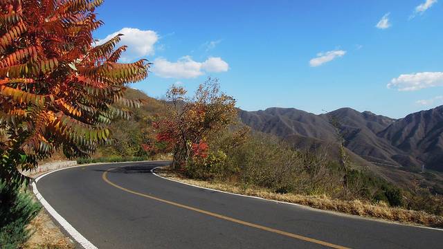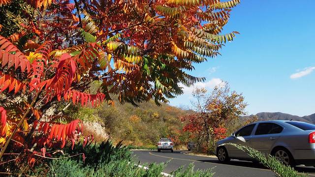 6年前的金秋,我从门头沟的龙泉宾馆退房后,临回市区之前还想在山里的盘山路上过过车瘾,于是稀里糊涂就顺着山道往上开,直开到再没有路的妙峰山景区大门前,留了个影打道回府了。