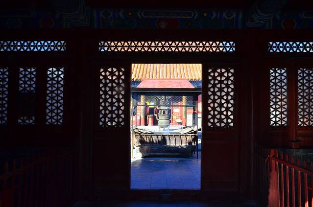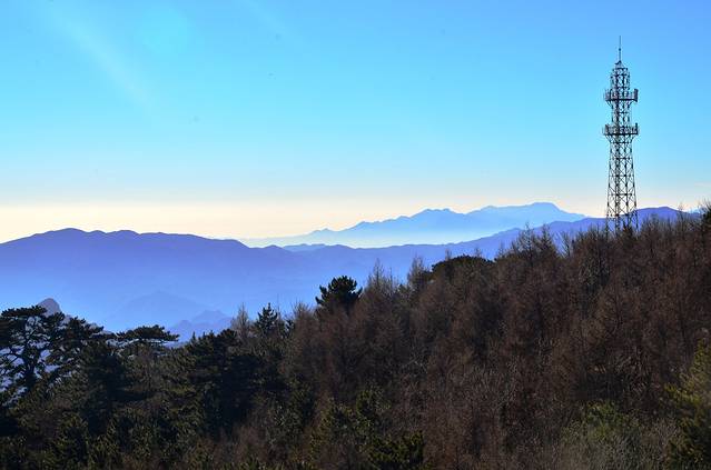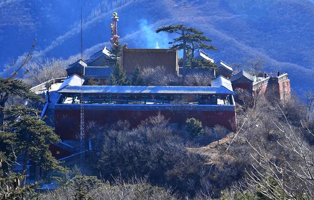 寺庙里面无非是香火香客香炉等等,我本人也实在是没有多大的兴趣再去拍摄,况且背对着虔诚的香客我也不太好意思举相距,也不合适。倒是站在回香阁的台阶上俯瞰群山,在今天这个久违的能见度下,竟也看到了远处的层峦叠嶂,令我兴奋不已...