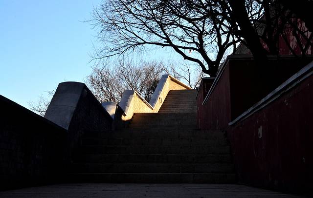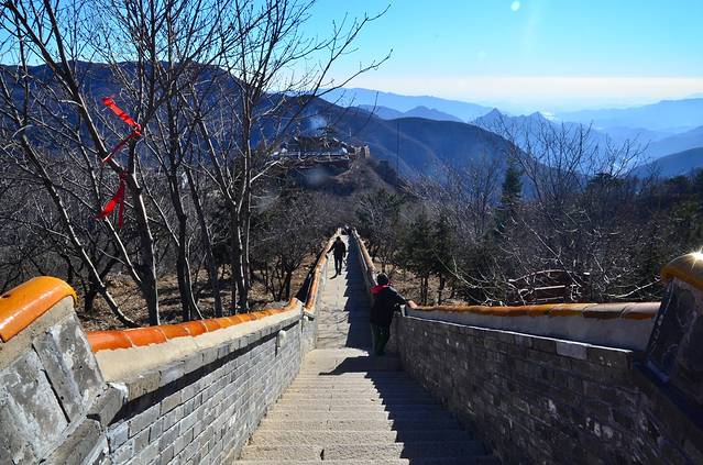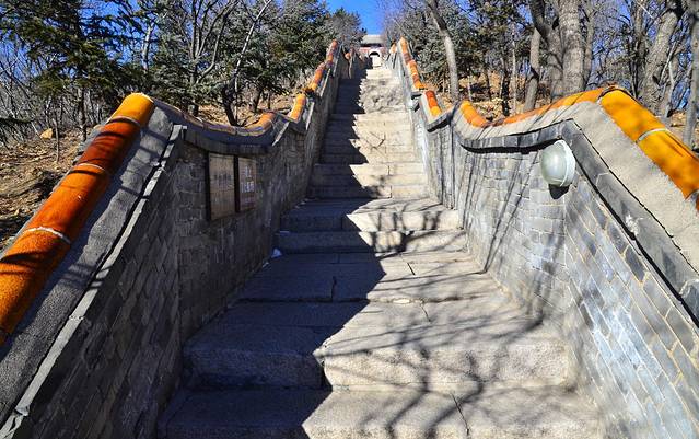 我承认近二十年前开大巴带客人去过一次妙峰山,对它的记忆就是:那坡度可够大的,很多盘山路段我是用2档拱上去的;其次便是,好像里面有个很陡峭的台阶,很长,当时我还见到一个虔诚的老者,跪着膝行往上一级一级地磕头上去....