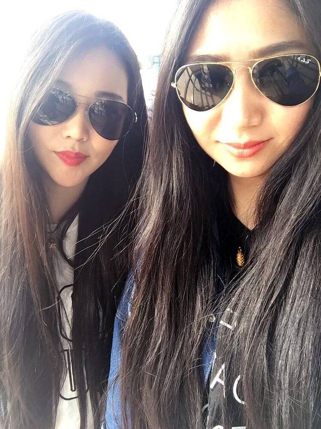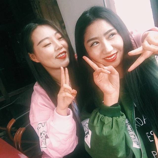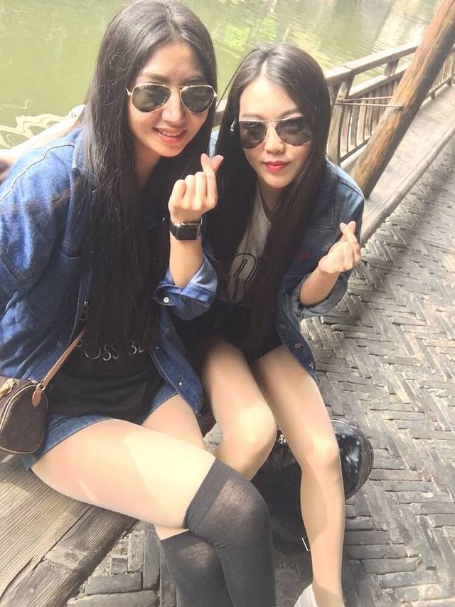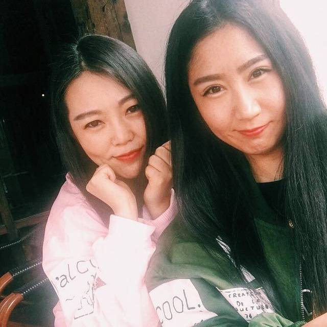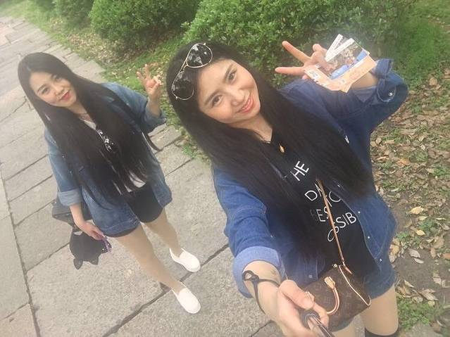 和闺蜜用自拍杆照两张,亮点,每天我们的衣服都是有搭配的噢!