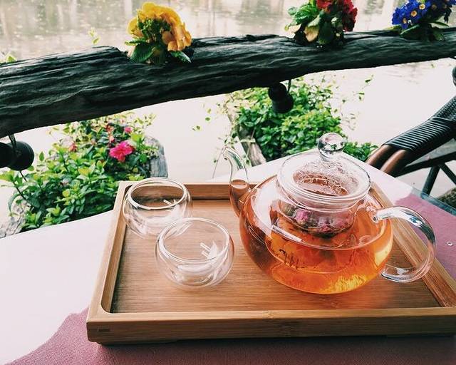 逛累了,喝杯茶,古镇里到处都是白天咖啡厅,茶楼,晚上就变成酒吧了,这一壶花茶120,我也是醉了!