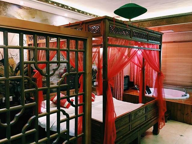 网上订的客栈【胭脂醉】,老板人不错,我们下客车后来接的我们,第一次住这种客栈,装修风格两个女生住实在有点暧昧,哈哈!
