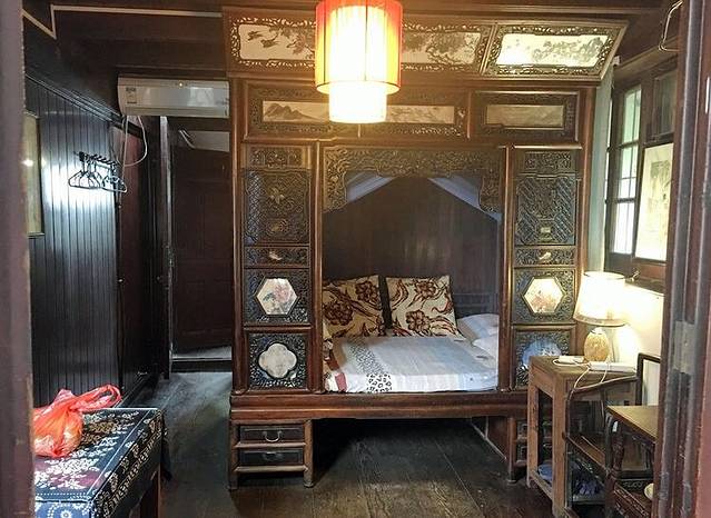 这就是景区内的民宿,里面挺小的,我们连住了两天,房型都一样,一个临水的740元,临街的510元,面积虽不大,里面的软件还是很不错的,空调非常热,推荐如果去西栅玩,一定在景区内住一宿吧,里面真的太美了!