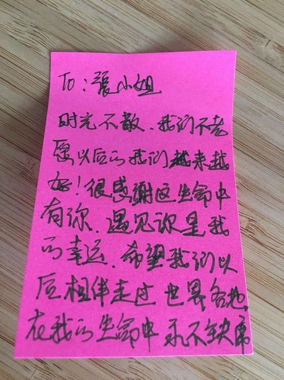 我和大美在喝咖啡,突然给我递过来这个,我顿时湿了眼眶,但由于不好意思,又让我控制回去了,从来不敢相信,人生中会遇到一个和自己一模一样的知己,我真的是非常幸运,愿我们在彼此的生命中永不缺席!