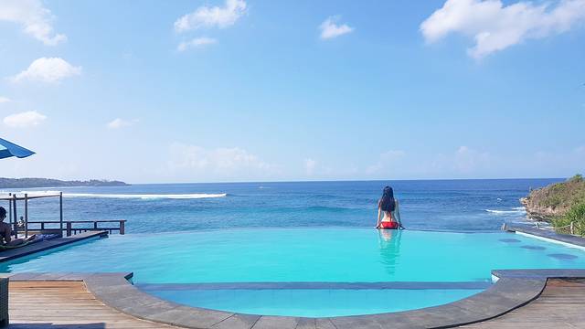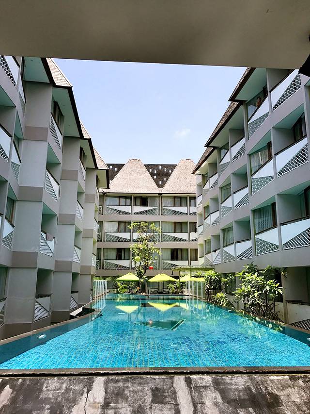 🏨随手拍,我住的一楼,打开阳台门就可看到泳池,像这样的泳池巴厘岛几乎每个酒店都会有,不用担心,很干净的~