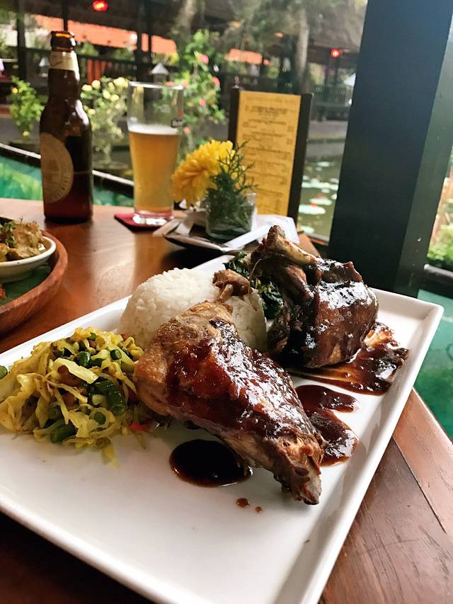 做完spa,天已经黑了。虽然巴厘岛比国内热,但是没有时差,天黑的也很早~直接让司机送我们到乌布皇宫,我们自己在附近觅食。野哥找了一家口碑超好的店,我们去了发现早已预定完了(旅行不怕遗憾,有遗憾才会想要再去弥补)💔💔心碎了,随便找了一家安静的店,吃起来也不错呢