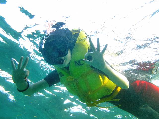 我要去跳水浮潜了,自带浮潜面罩,这边提供的都是用嘴呼吸的,感觉不是很卫生,自己死沉的背了两个过来不讲究的完全没必要,后面深潜你不用人家的还不行呢~