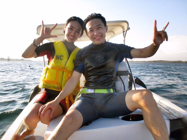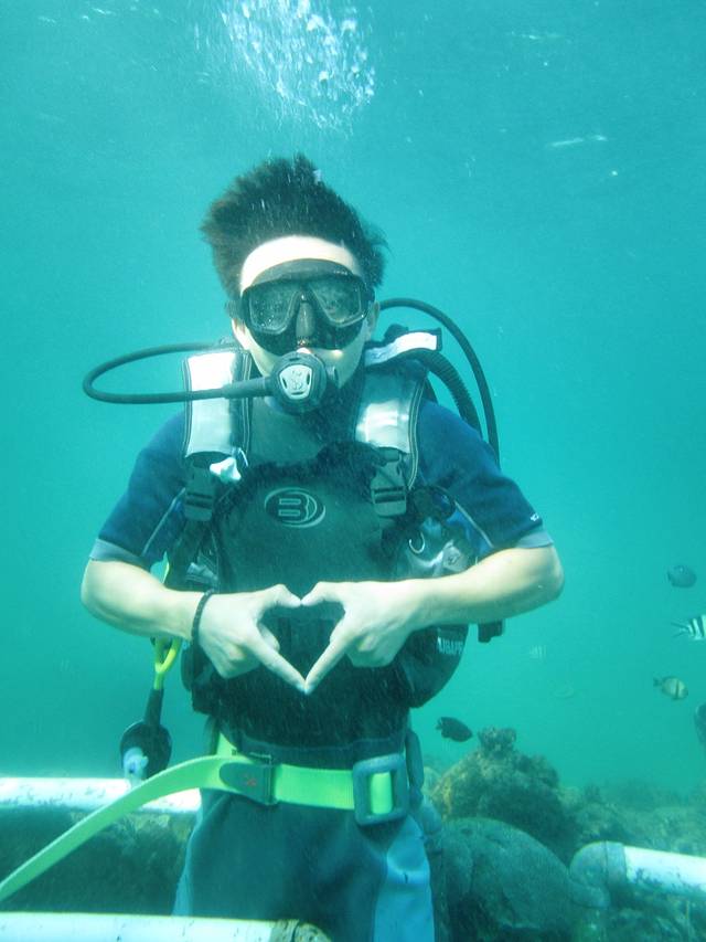 本来报了两个人深潜的,无奈我总是用不好那个呼吸的,最后只有野哥自己去深浅,以后有机会我在和野哥一起深潜~野哥超棒,玩了一个飞鱼项目,很快掌握要领在海面飞起来了,可惜我只有视频没有照片