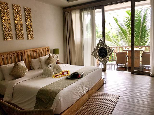 🏨主要是以木质家具家居为主,有漂亮的竹子背包还有草帽🆓提供,一对一服务的标准让我和野猪受宠若惊(意味着要一对一巴拉拉不停🙉英语交流)还好,野哥在手,我不用怕。到了这里,你的箱子不用再担心,有人会帮你送到房间。还会有专属人员亲自送你到房间,并给予你一支🌹,他们会向你了解除了在乌布以外的行程安排,会提供我们比在某宝上订的还要便宜的船票和包车。我比较了一下,真的差了将近一半~来这来对了√