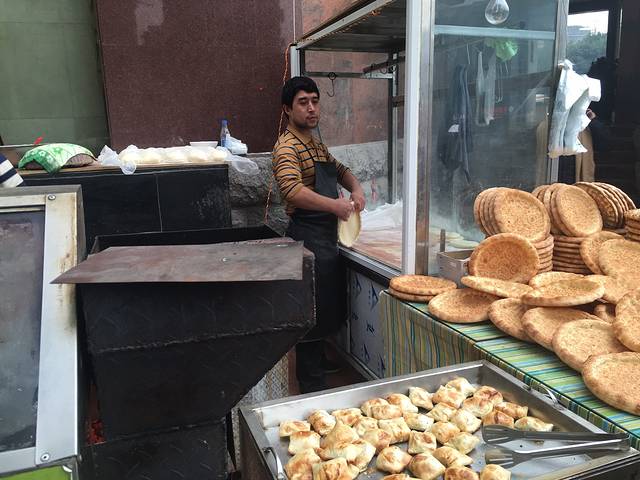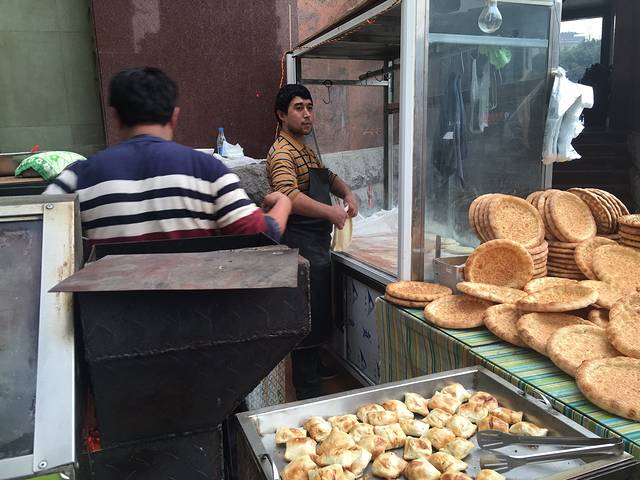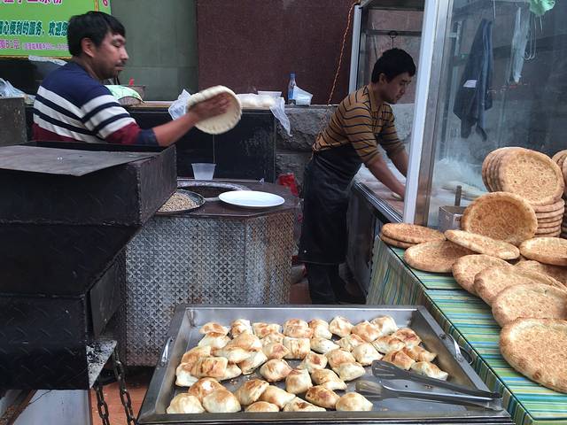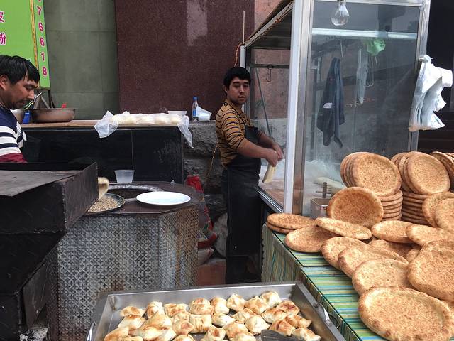 然后第一天从天府广场走到宽窄巷子,路过一家新疆馆子,门口招摇地卖烧烤还有馕饼,挂着刚刚宰的羊🐑...... 羊羊羊吃🐑哈哈哈,真的很好吃很新鲜很新疆,关键是每天都去买都认识了,卖串的小哥也很憨哈哈看见我们就笑,还要做馕饼的小哥,永远一副六神无主呆呆的鬼样子,超级好笑,我忍不住后面拍了live照片,哈哈哈打开就笑死,就在天府广场地铁站c口还是什么口的斜对面的十字路口,价格还是贵的我觉得,但还是mark一下