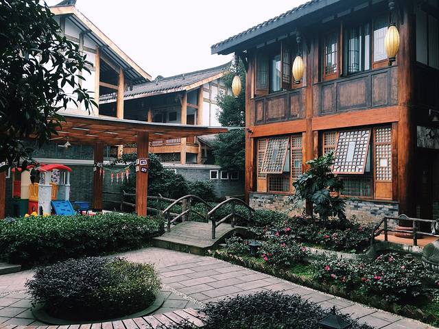 这个旅馆是好多熊猫酒店,是一个大院子,院子里有熊猫棋牌室 茶室 跟城区的小景点一样,还是挺美的,附近有个湖也是个景点,抱歉我懒得并没有去,但前台姐姐说还是很美的..