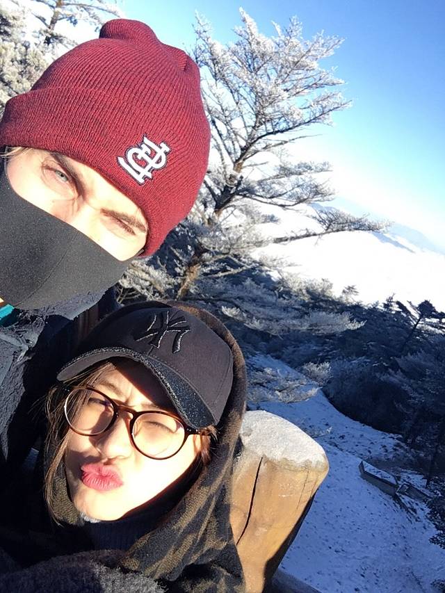 一路走到雷洞坪,一片雪白,总有几棵树枝承受不住堆积的厚厚的雪而抖擞掉落,所以尽量不要太靠近树底下,羊羊羊已经知道错了,顺便路上忍不住拍了好几张自拍哈哈哈,我们两个那天真的很赶时间,退房时间12点,我求了情延到一点多,我们下山的时候就是飞奔,我觉得在那里滑雪也绝对没问题哈哈哈