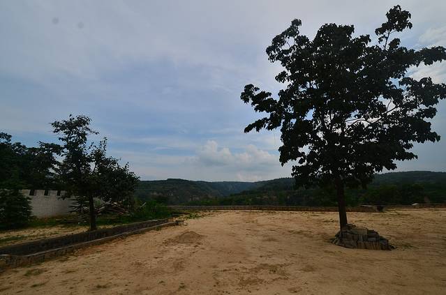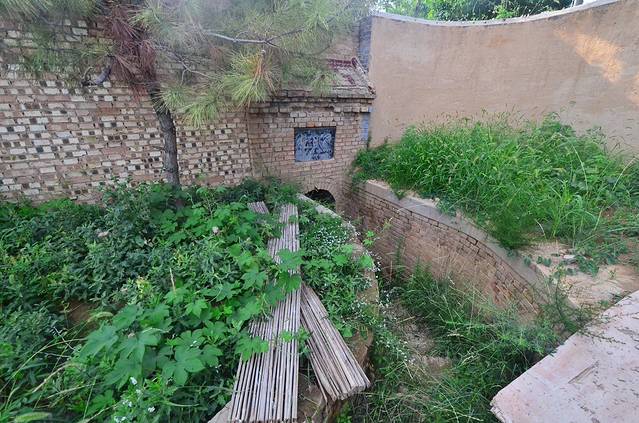 进入城门楼后,没走几步,穿过一个拱形的廊洞,出来就是上图里表现的一片平地,而在这片平地上整齐分布的是几乎一模一样的几个呈几乎正方形的“大坑”,这个“大坑”四边用瓦砖砌的整整齐齐,规规矩矩地垒起一个四边坎。我猜想要是下大雨什么的倒是能够有效地阻挡大水的倒灌涌入吧。