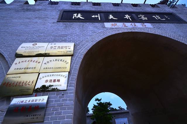 我驾车到达地坑院的时候,是在周六的下午三四点吧。除了导航外,也依靠沿途的一些棕色的景点标志找到的。有个相对气派的门楼,就是景点的大门检票处。门前有个不大不小的停车场,稀稀拉拉的总共不过四五台车--看来这地方真是没什么游客来访,我在里面逛了两个多小时,就遇到一拨小年轻在里面游荡(今天还是周末呢)