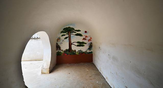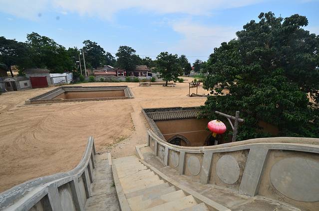 “地坑院”新奇的地方就在于:一般的村庄都修建在平地上面,而它却修建在平地的下面。那几个整整齐齐的“大坑,其实就是这”地下院落“的天井,所以”地坑院“的全称叫做”天井窑院“