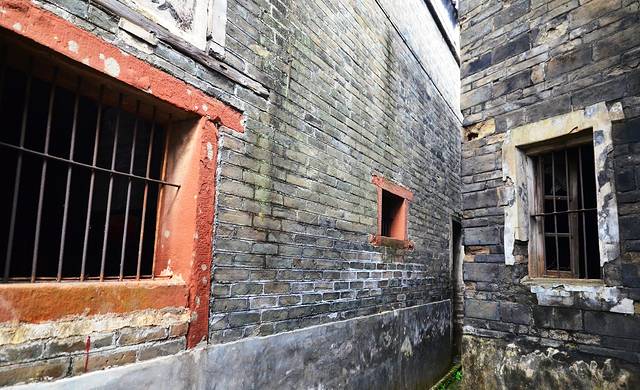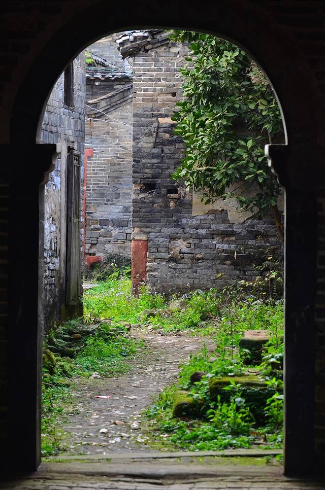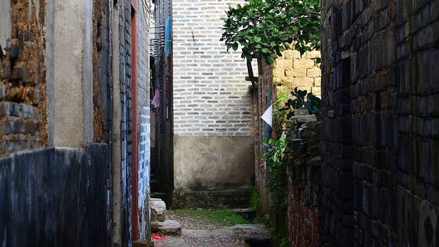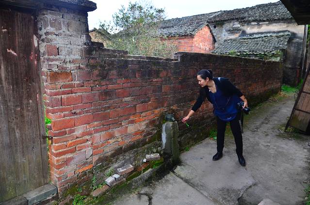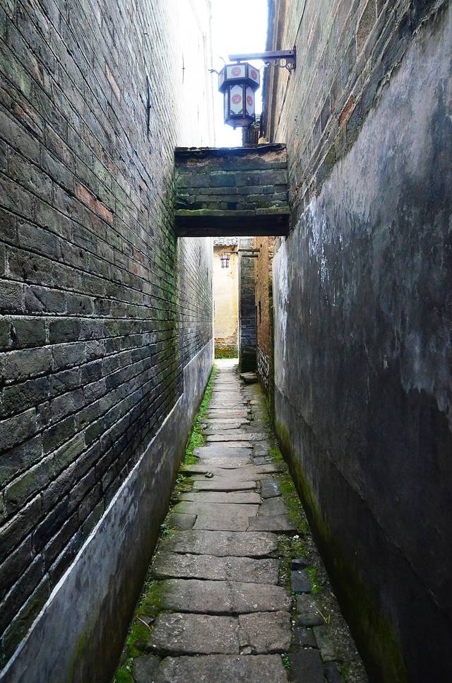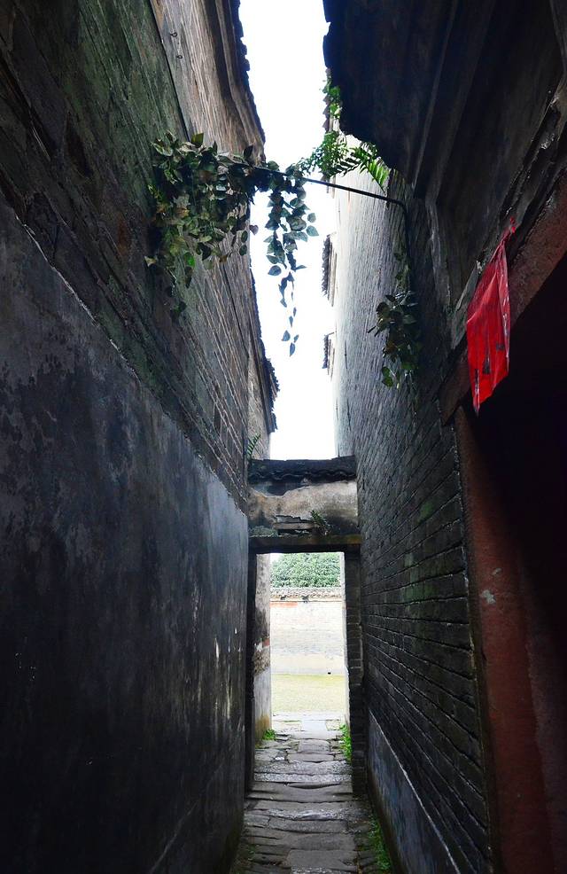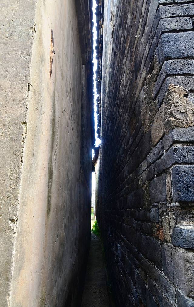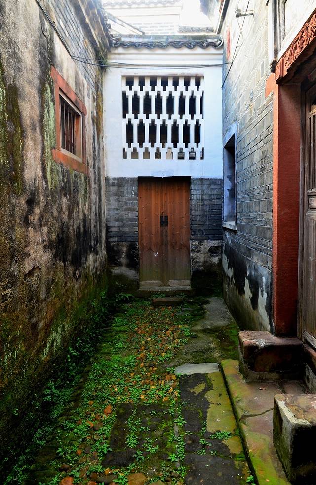 古村子的老房屋,建筑的都比较紧密,于是房屋之间的缝隙处常年普照不到阳光,阴暗潮湿,青苔遍地横生,脚下很滑。不过倒显出确实是经年累月长久的古物了,哪怕一砖一石。