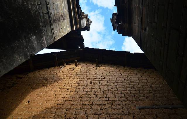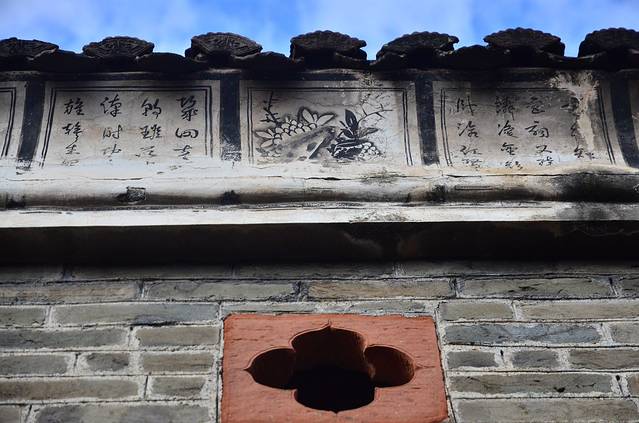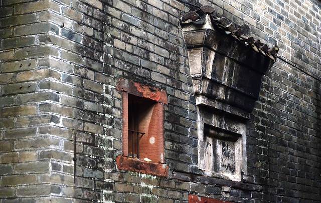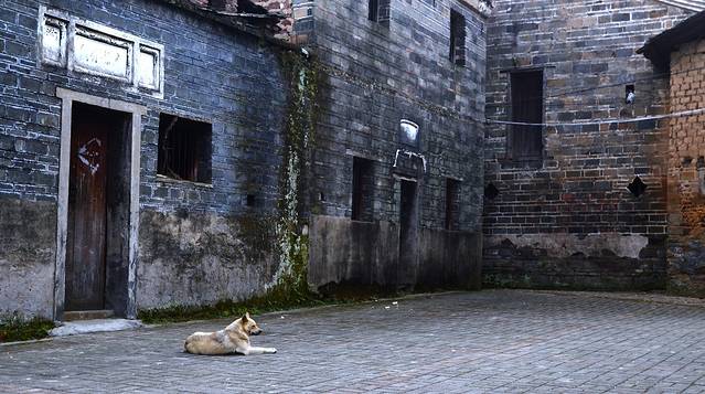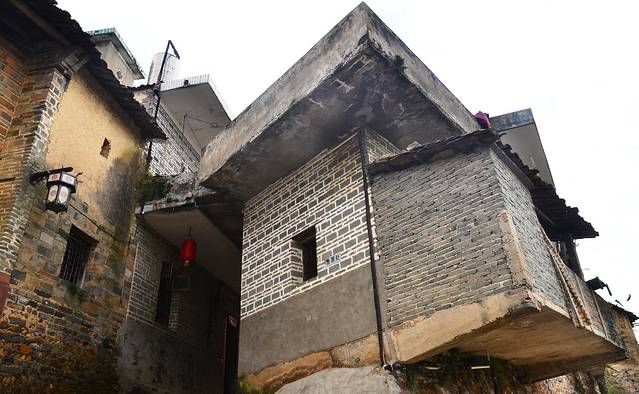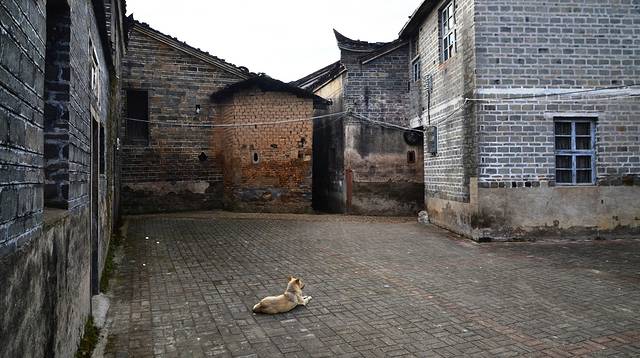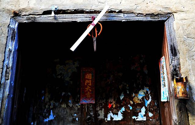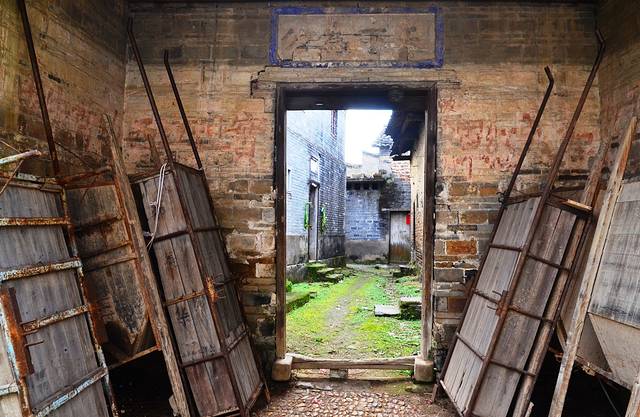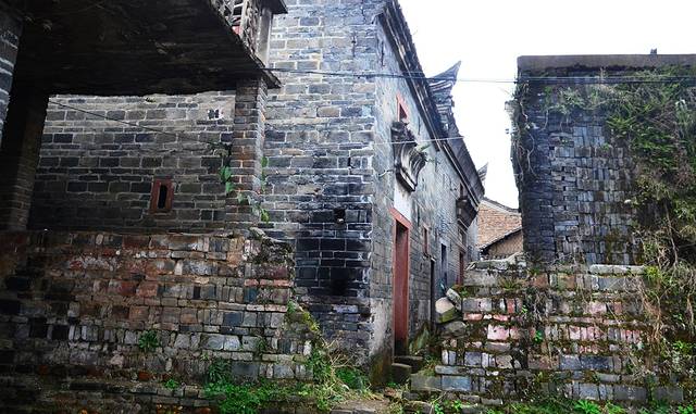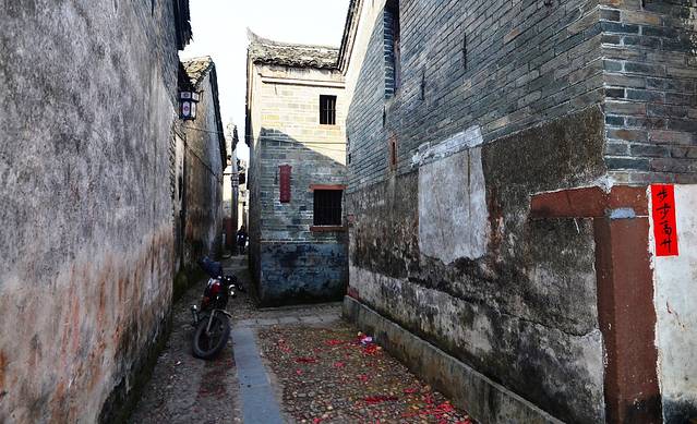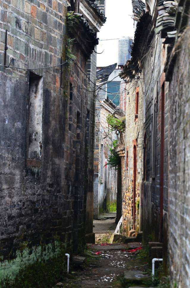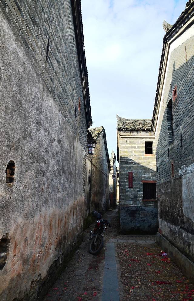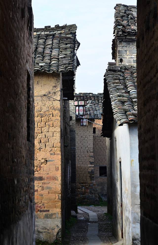 古村子的老房屋,建筑的都比较紧密,于是房屋之间的缝隙处常年普照不到阳光,阴暗潮湿,青苔遍地横生,脚下很滑。不过倒显出确实是经年累月长久的古物了,哪怕一砖一石。