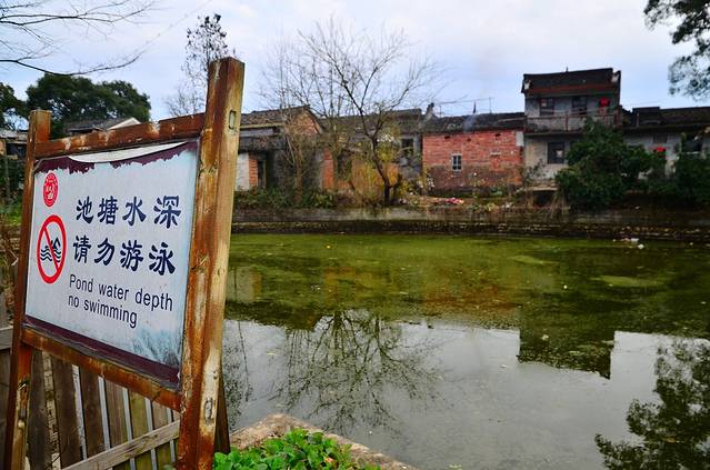 刚进门就看到宏伟的梁氏宗祠以及门前的池塘,多好的一幅倒影中的古建筑画面?可惜那水呀,就是脏,没人治理?