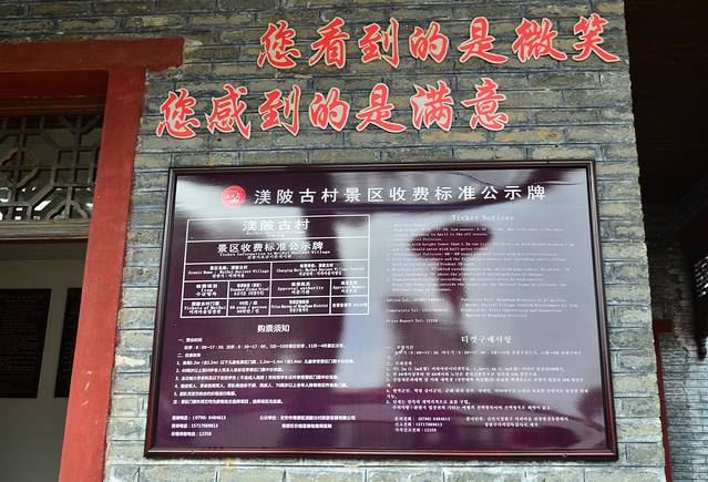 根据导航来到古村的停车场,来到一块门牌楼前才确定肯定是来对了地方了。过了这个门牌楼找到一个类似游客中心的地方仔细端详公示的价目表,没找到价格,心里窃喜以为不收费呢,结果刚要进村就被保安轰出来买票,每人60!