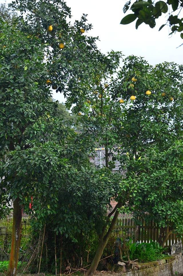 要不是看见树上挂着成熟的柚子,我根本分辨不出这就是柚子树?