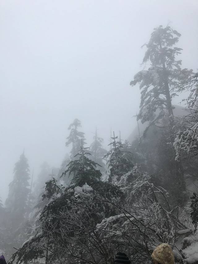 然后坐车到达雷洞坪之后,看着满山的雪啊,当时那个激动,想想上次见雪的时候还是小时候,然后就到处处拍照(这时候就需要一个会拍照的男朋友了,想想自己因为拍照的问题被女朋友批了无数次了,在这里建议大家,有女朋友的男生好好学习拍照,以后出去玩可以表现哈,没有女朋友的男生也请好好学,以后谈念爱的时候也是会有有用处的),一路拍照到接引殿,然后又走下来,然后想去滑雪,被告知关门了,第一天的形成就结束了。