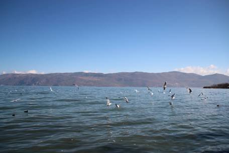 喂海鸥,每当冬季来临,成千上万的红嘴鸥就会来到洱海避寒过冬,来年开春,它们就会离开大理喽!如果你来的时候海鸥已经离开,这里的亲水体验也是值得停留的。