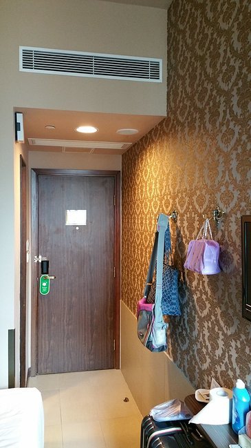 酒店大堂设在 7 楼,前台服务很热情,见我携一位老年人入住,前台大叔二话不说,就免费将我丁的高级房升级成了豪华房。他们办理入住和退房的速度也都很快(check in 时需要交 500 港币押金),之前看点评,有人说它家 check in 和 check out 效率实在太低了,大概是因为酒店前台只有 1 名工作人员,而且酒店前台真心迷你,撑死也就 20 平米,如果你不幸碰上几组人同时扎堆涌进来登记入住和退房的话,可以想象,是会有些慢的。