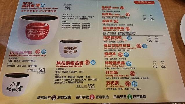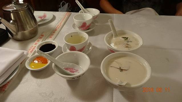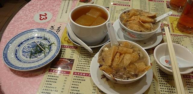 陆羽茶室既然敢以茶圣为名,它家的茶自然也绝对是好茶,普洱、龙井、六安、香片、白牡丹、铁观音都有供应,这些茶叶起码储上15年才奉客,所以它家也敢收每人32港币的茶资(龙锦轩茶资也才每人35港币)。