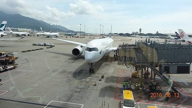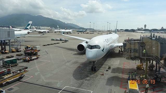 候机时见到国泰航空的 A350 飞机,好 动啊~