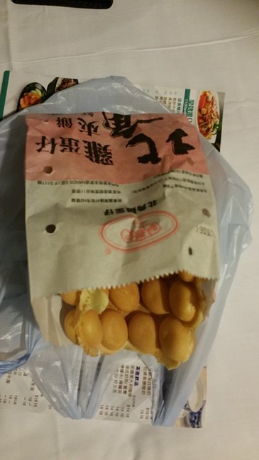 它家招聘的椰汁蛋卷是手指长的一根,纯手工制作,虽然不像德成号那样卷身布满气孔,但吃起来还是很酥脆,并伴有浓浓的椰香味。