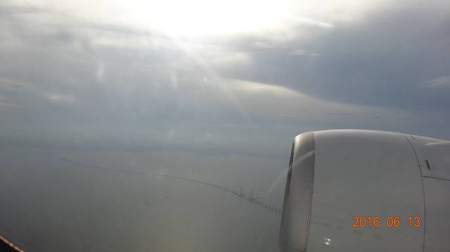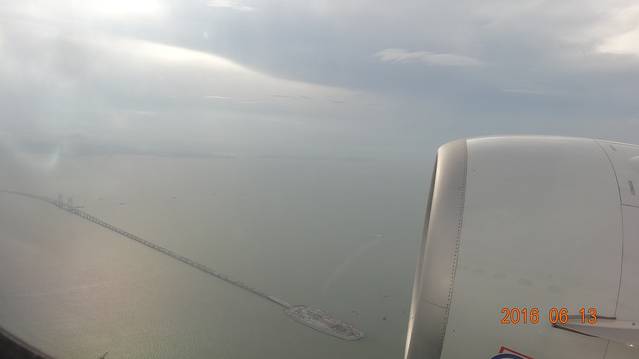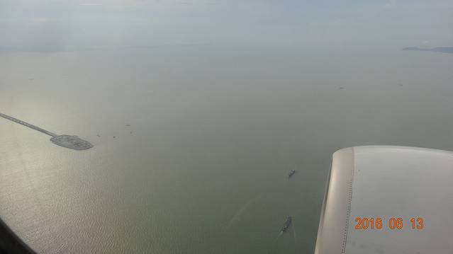 机翼下方就是施工中的港珠澳大桥人工岛。