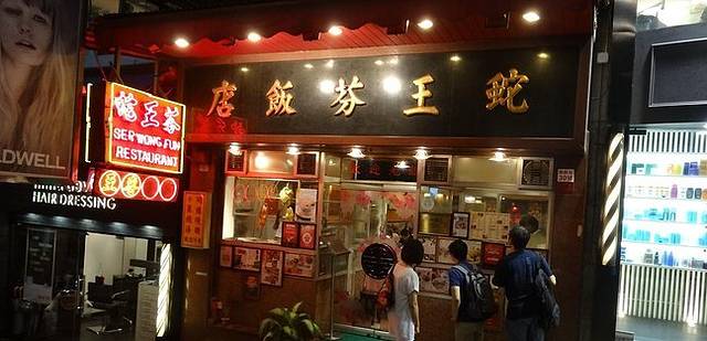 蛇王芬的内部装潢很有老饭店的感觉,木头板凳,玻璃桌面以及墙壁上挂着的竹片菜单,无一例外都在营造一种历史的沧桑感。