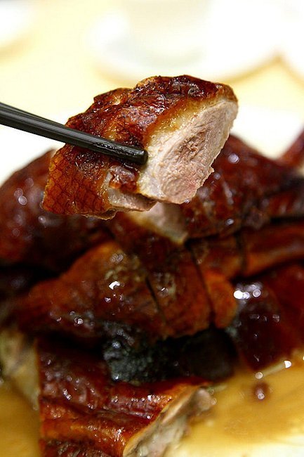 先说烧鹅,薄脆的外皮感觉快炸裂一样,丰富的鹅油肉汁不断的从切口处涌出,鹅皮下方还有一层半透明的胶质,当舌尖突破酥脆的鹅皮,接触到这层胶质时,香醇的鹅油瞬间包裹住你的舌头,让人欲罢不能的美味攻击一波接一波,使你一直狂啃下去。