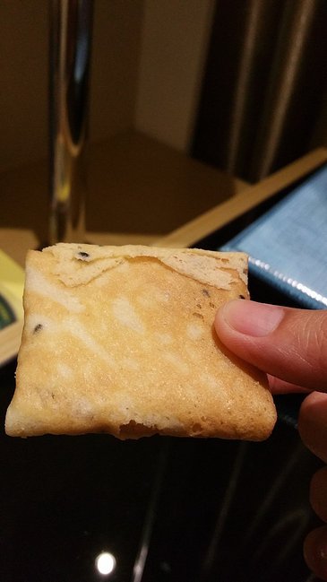 蛋卷里加入了肉松,左折右叠变身扁身的凤凰卷,还有粒粒芝麻,很提香。