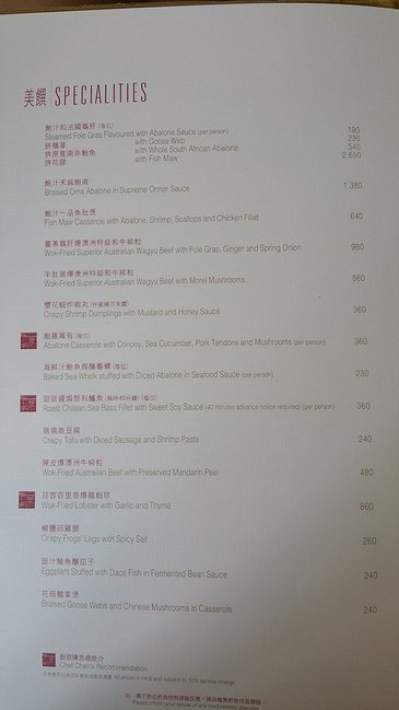 因为已经先做好功课要点些什么,所以立马就完成了点菜。龙景轩每一道菜品皆精致美味,跟一般酒楼相比,用料高级许多,这也反应在了它家菜价上,都不便宜,道道价格不菲(每道菜大多要250港币以上)。
