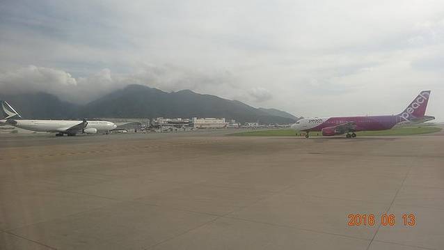 我们的飞机紧随着前方国泰航空的波音 777 大飞机,缓缓驶向跑道,准备起飞~