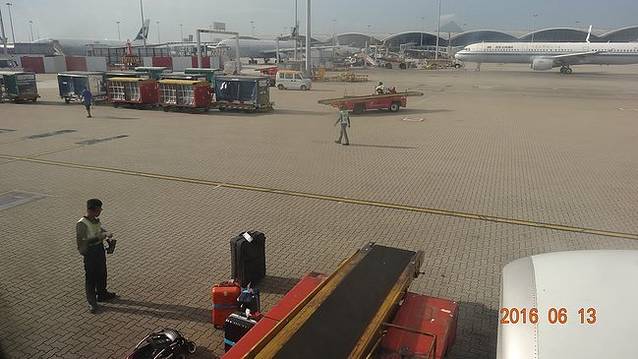 开始装载行李,好好盯着,看你们有木有野蛮搬运,让行李飞!
