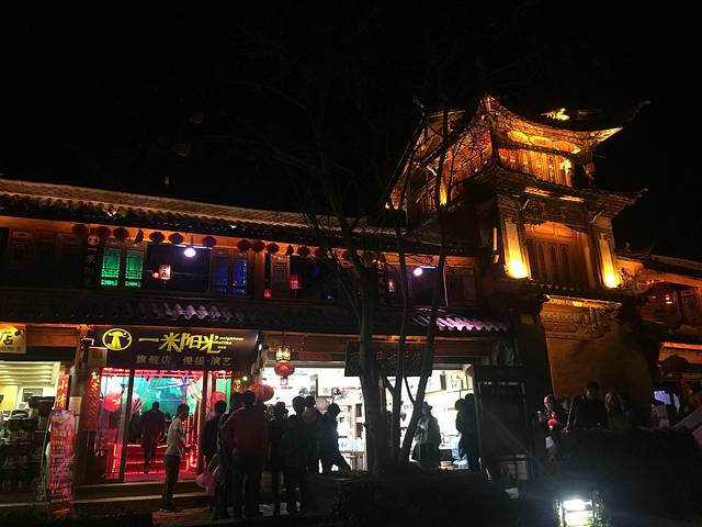 华灯初上,街上的人开始慢慢多了起来,灯光也亮了起来,古城开始热闹。