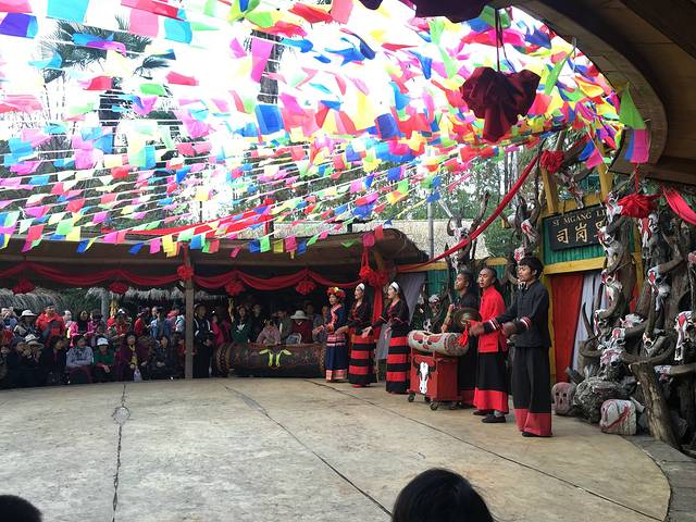 从东南门进去,我们以为就是进入了民族村,还在想原来不需要门票,挺好。沿着主路往里走,才发现我们还真是天真,走着走着就到了该需要买门票的地方(捂脸笑哭)。民族村的成人全价票是90/人,后来才发现网上有打折的门票,78元/人,额。。。民族村很大,我们转了三四个小时就出来了,没有太仔细的认真欣赏,中间看了一次大象表演,看了一次佤族的木鼓及甩发舞表演,吃了一点儿小吃就满足的从民族村出来了。