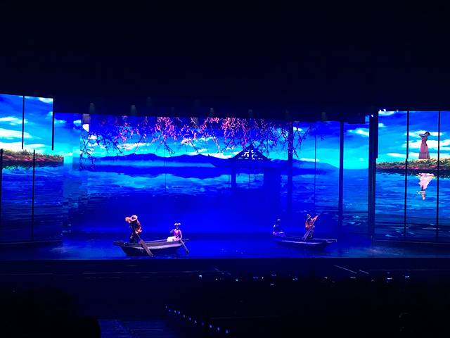 演出挺好看,场面很宏大,惊讶的是里面有瀑布的场景竟然全是实景,很赞!分四部分:第一幕 泸沽女儿国;第二幕 马帮传奇;第三幕 木府辉煌;第四幕 玉龙第三国。