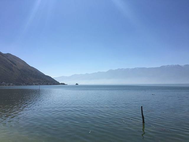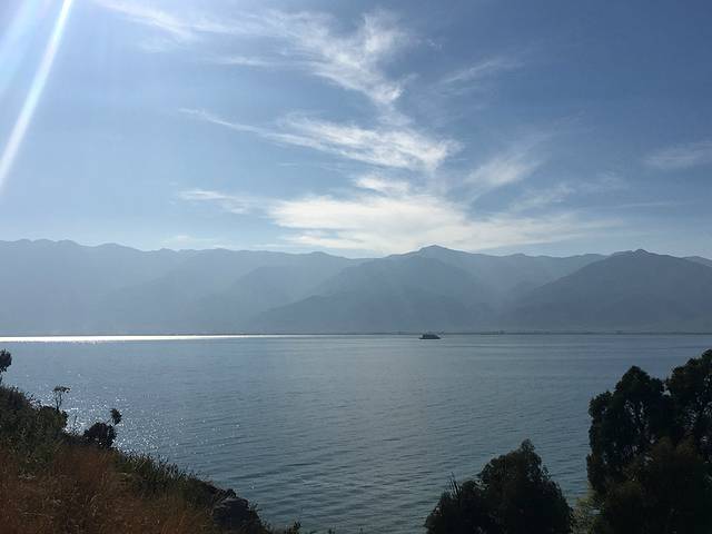 “生活不止眼前的苟且,还有诗和远方的田野, 你赤手空拳来到人世间,为找到那片海不顾一切”。去之前,脑海中就反复重复着许巍的这首歌,等见到洱海的那一瞬间,所有的浮躁和旅途的疲惫都烟消云散,仿佛是这片海装下了一切。坐在电动车后座上,恨不得每一处都停下拍个够,又不停的告诉自己美好的景色记在心里就足够了,照片是远远不够装下如此美丽的景色的。于是跟他们商量,去的路上,我们只用眼睛来记录,等回程的时候再看看哪些地方特别想拍照。这里要提醒一下想去的看官们,一定要在环湖的时候做好防晒,一定!我们四个人中,标哥因为没提前准备帽子,结果一天下来鼻子被晒伤,整个脸上都是红扑扑(笑哭脸),两个女生也是汉子,都没带防晒霜,只靠帽子撑起了防晒的重任,小刘先生去年一个冬天捂白的脸在环湖那一天就黑了回去。