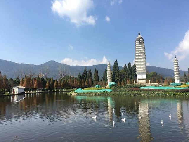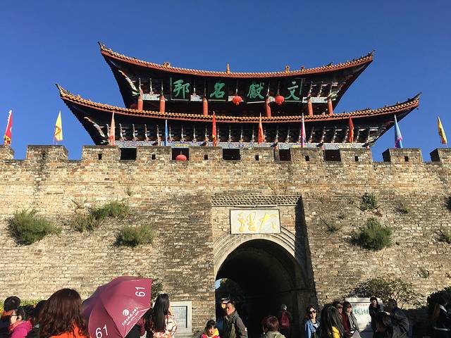 四个人碰面后计划只在昆明待一天,去看看心目中的滇池就好。后来发现只去滇池完全用不了一天,于是坐从火车站出发的公交在民族村下了车。先上一张民族村大门的照片,该游记中的所有照片均出自水果6s,如有要求高的看官,请忍耐。我们去的这几天,云南的天气基本都是晴,蓝天白云下显得分外美好。