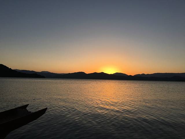 那边的日出不像在泰山上看到的那样会一点点跳出来,泸沽湖上的日出时间较短,看着蛋黄从无到有就是太阳升起来了。不过依然是美的。