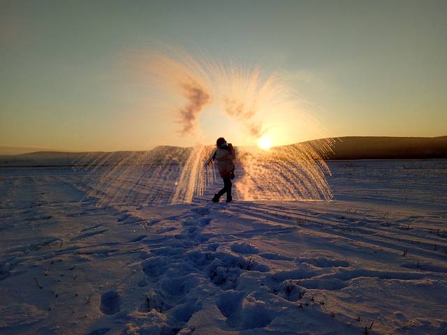 日出时候,我们提了两壶开水去玩泼水成冰,完全不够啊~ 我都没有好好玩就没水了。