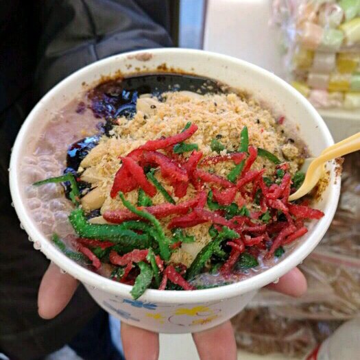 文化街现在比过去大了很多,边上多出了很多条道,都是小吃街,卖茶汤的,卖锅巴菜的到处都是,茶汤味道都差不多,大铜壶很是吸引人,味道其实每家都差不多,大家可以遛遛看哪家价格合适,我们开始买的15一碗,后来在娘娘宫后面看见人家卖10块一碗,其实前几年还5块钱呢。