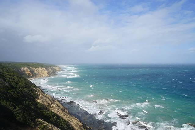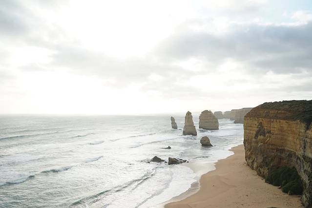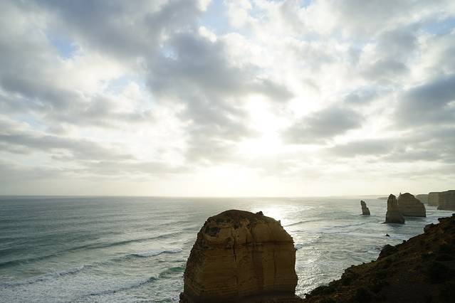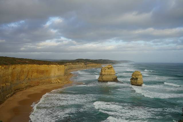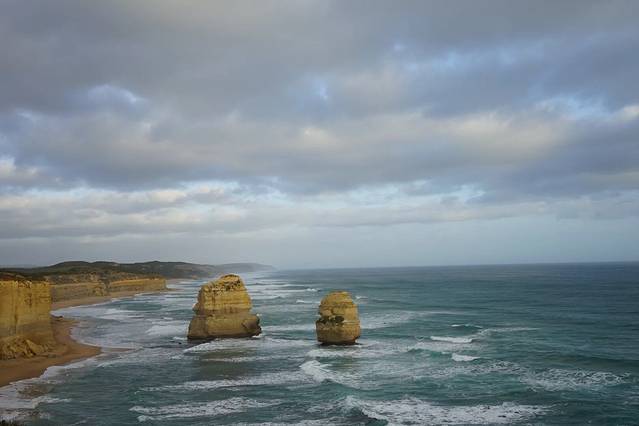 大洋路位于墨尔本西部,是全球最美公路之一,每年慕名而来的游客都数以万计,沿途漫长的海岸线有小镇,有树林,有悬崖,有灯塔…… 最出名的精华是十二门徒~ 我们一路走一路看一路哇哇哇… 虽然刚从大堡礁看了辣么绚蓝的大海,但是这里的海又是另外的风景。