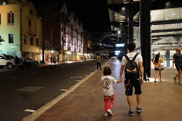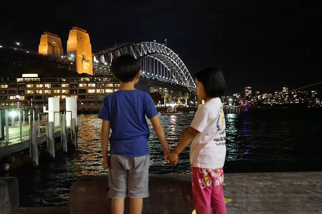 吃饱喝足后散步回到Circular Quay,在这里眺望悉尼大桥和歌剧院的夜景,真的很美哟!海风吹来,洗去路途劳顿的疲累~