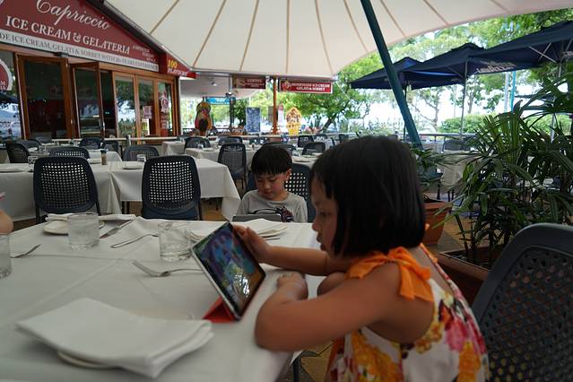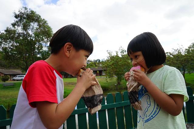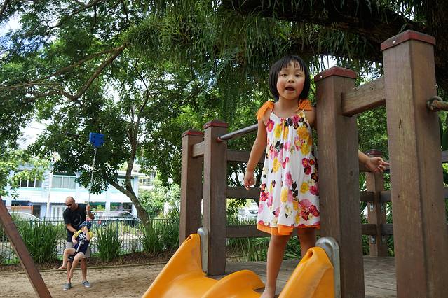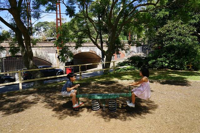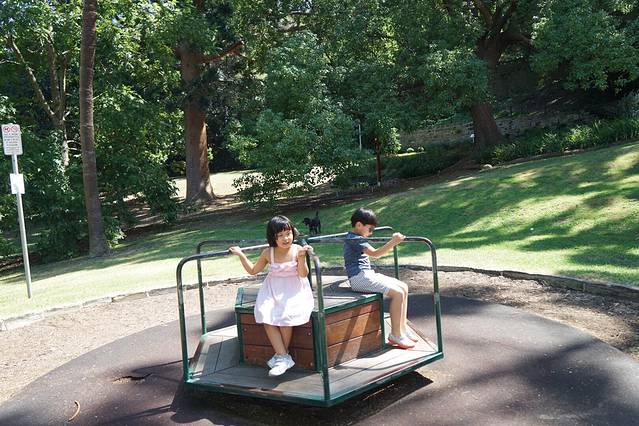 从Blues Point到餐厅的路上有个小公园,两娃又屁颠屁颠地玩起来了~