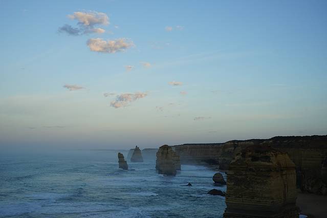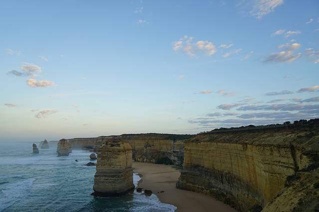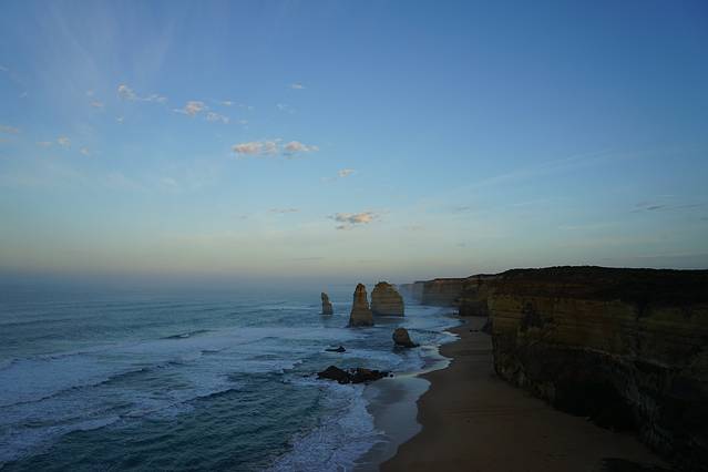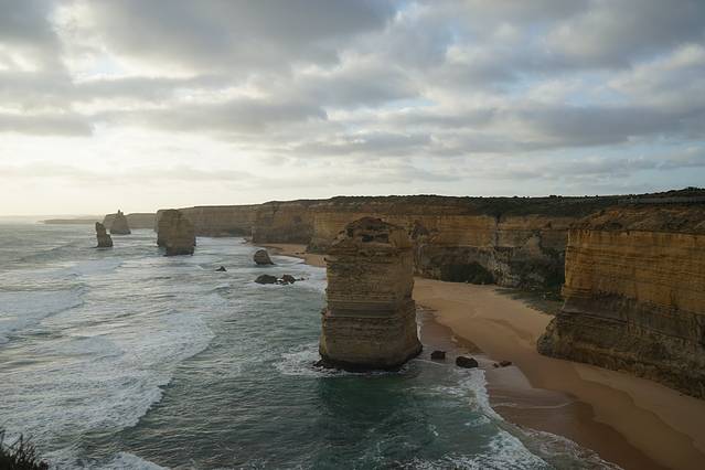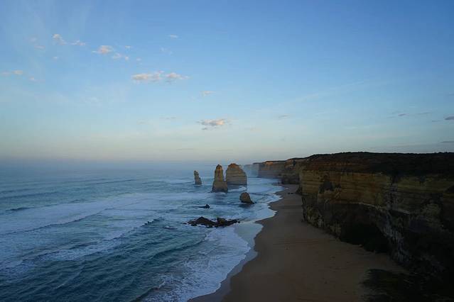 十二门徒原来是形态各异的十三根石柱伫立在南冰洋的汹涌波涛中,让人容易联想到圣经中追随耶稣基督的十二门徒,故因此得名“12 Apostles”,其中有几根已经被海水吞噬了,但景象依然壮观。